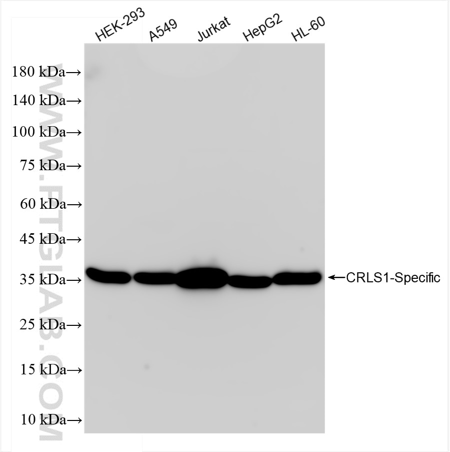 The CRLS1-Specific antibody from Proteintech is a rabbit recombinant antibody to a peptide of human CRLS1-Specific. This antibody recognizes human antigen. The CRLS1-Specific antibody has been validated for the following applications: WB, FC (Intra), ELISA analysis.