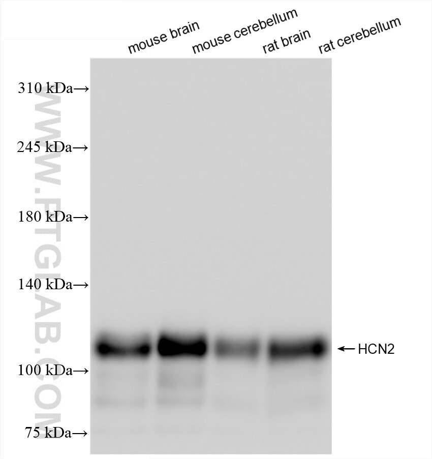 The HCN2 antibody from Proteintech is a rabbit recombinant antibody to a fusion protein of human HCN2. This antibody recognizes human, mouse, rat antigen. The HCN2 antibody has been validated for the following applications: WB, ELISA analysis.