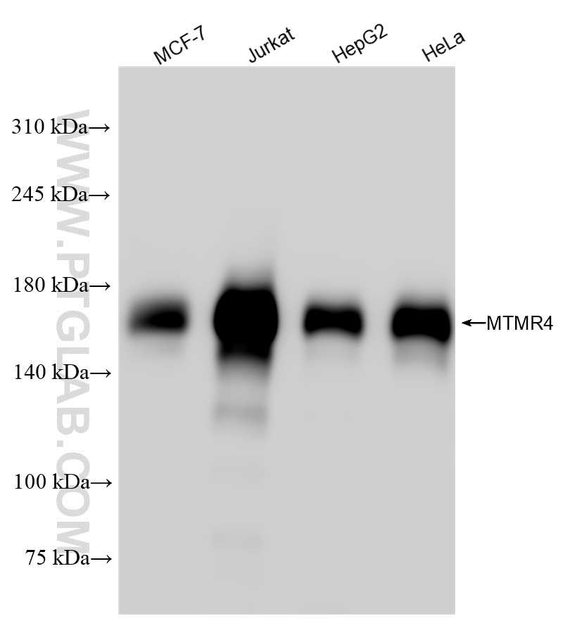 The MTMR4 antibody from Proteintech is a rabbit recombinant antibody to a recombinant protein of human MTMR4. This antibody recognizes human antigen. The MTMR4 antibody has been validated for the following applications: WB, IF/ICC, ELISA analysis.