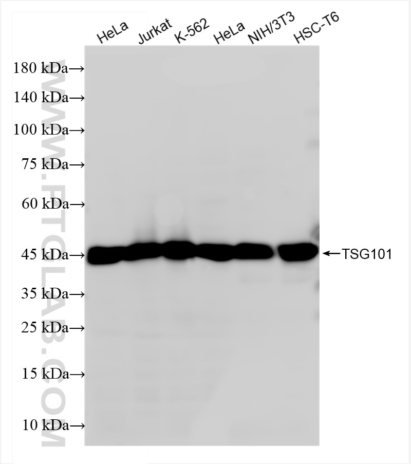 The TSG101 antibody from Proteintech is a rabbit recombinant antibody to a recombinant protein of human TSG101. This antibody recognizes human, mouse, rat antigen. The TSG101 antibody has been validated for the following applications: WB, IHC, IF/ICC, ELISA analysis.