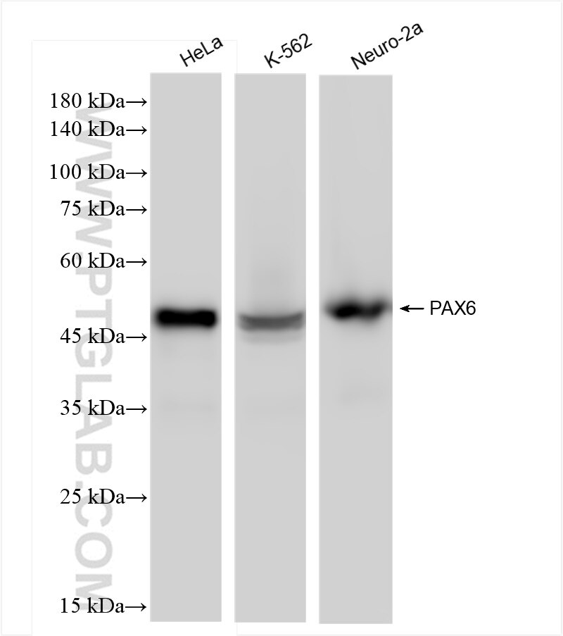 The PAX6 antibody from Proteintech is a rabbit recombinant antibody to a recombinant protein of human PAX6. This antibody recognizes human, mouse antigen. The PAX6 antibody has been validated for the following applications: WB, IHC, IF-P, FC (Intra), ELISA analysis.