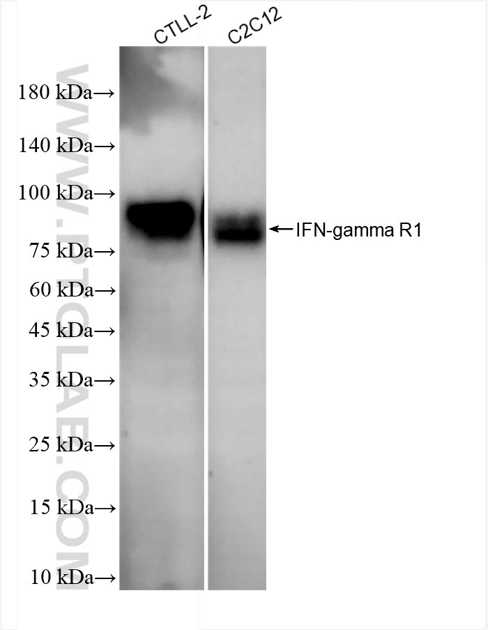 The IFNGR1/CD119 antibody from Proteintech is a rabbit recombinant antibody to a recombinant protein of mouse IFNGR1/CD119. This antibody recognizes mouse antigen. The IFNGR1/CD119 antibody has been validated for the following applications: WB, ELISA analysis.