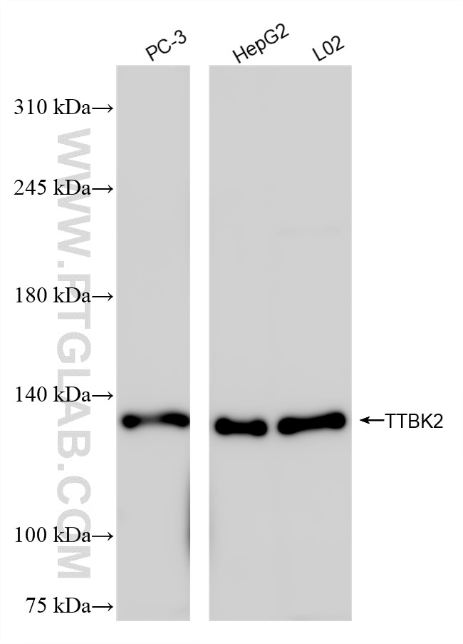 The TTBK2 antibody from Proteintech is a rabbit recombinant antibody to a fusion protein of human TTBK2. This antibody recognizes human antigen. The TTBK2 antibody has been validated for the following applications: WB, ELISA analysis.