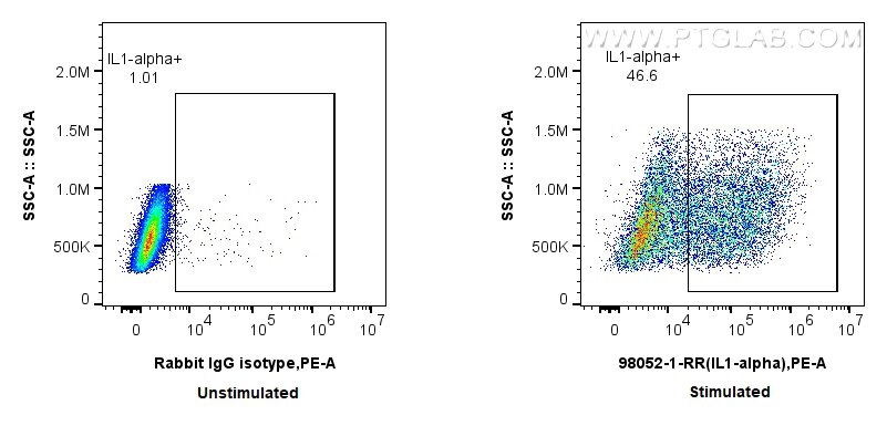 The IL-1 alpha antibody from Proteintech is a rabbit recombinant antibody to a fusion protein of mouse IL-1 alpha. This antibody recognizes mouse antigen. The IL-1 alpha antibody has been validated for the following applications: FC (Intra) analysis.