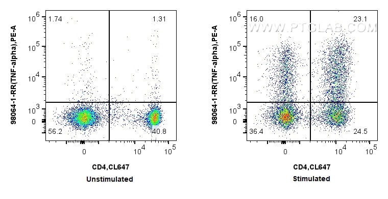 The TNF-alpha antibody from Proteintech is a rabbit recombinant antibody to a fusion protein of human TNF-alpha. This antibody recognizes human antigen. The TNF-alpha antibody has been validated for the following applications: FC (Intra) analysis.