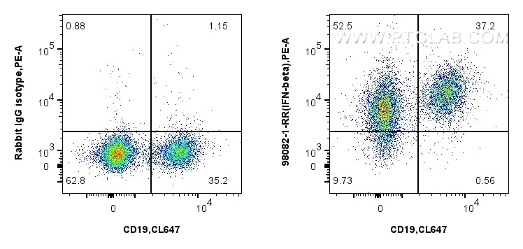 The IFN-beta antibody from Proteintech is a rabbit recombinant antibody to a recombinant protein of mouse IFN-beta. This antibody recognizes mouse antigen. The IFN-beta antibody has been validated for the following applications: FC (Intra) analysis.