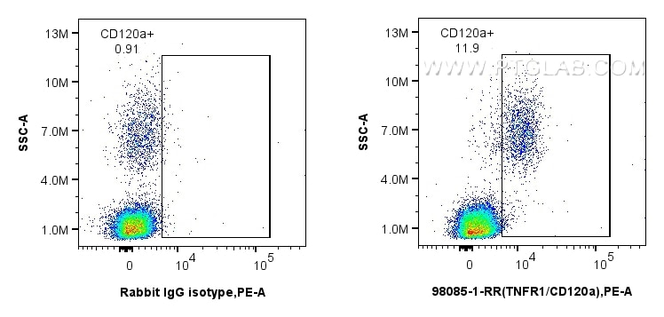The TNFR1/CD120a antibody from Proteintech is a rabbit recombinant antibody to a recombinant protein of human TNFR1/CD120a. This antibody recognizes human antigen. The TNFR1/CD120a antibody has been validated for the following applications: FC analysis.
