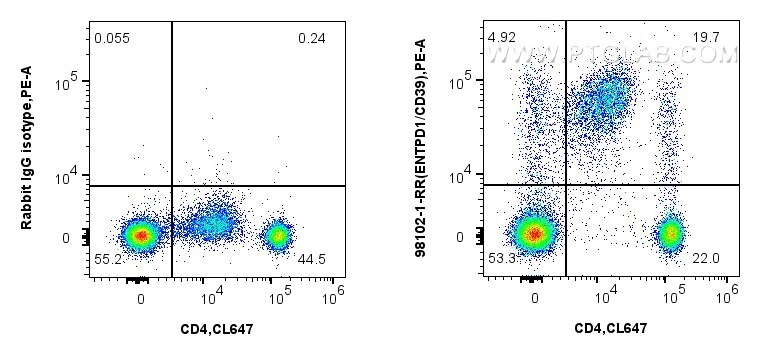 The CD39/ENTPD1 antibody from Proteintech is a rabbit recombinant antibody to a recombinant protein of human CD39/ENTPD1. This antibody recognizes human antigen. The CD39/ENTPD1 antibody has been validated for the following applications: FC analysis.