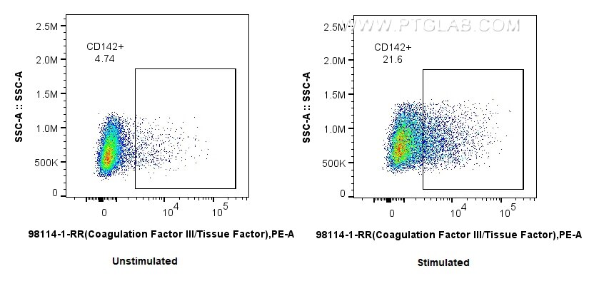 The Tissue Factor/CD142 antibody from Proteintech is a rabbit recombinant antibody to a fusion protein of mouse Tissue Factor/CD142. This antibody recognizes mouse antigen. The Tissue Factor/CD142 antibody has been validated for the following applications: FC analysis.