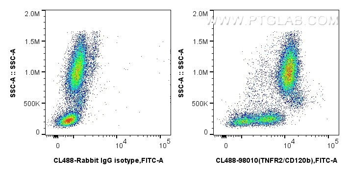 The TNFR2/CD120b antibody from Proteintech is a rabbit recombinant antibody to a recombinant protein of human TNFR2/CD120b. This antibody recognizes human antigen. The TNFR2/CD120b antibody has been validated for the following applications: FC analysis. This antibody is coraliteR plus 488.