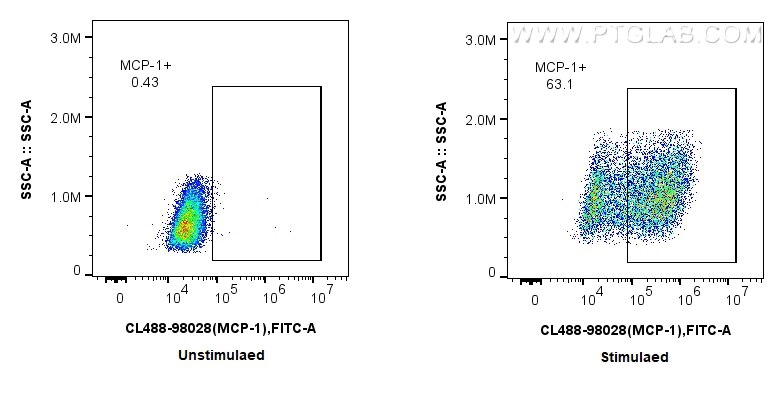 The MCP-1/CCL2 antibody from Proteintech is a rabbit recombinant antibody to a fusion protein of mouse MCP-1/CCL2. This antibody recognizes mouse antigen. The MCP-1/CCL2 antibody has been validated for the following applications: FC (Intra) analysis. This antibody is coraliteR plus 488.