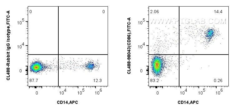 The CD86 antibody from Proteintech is a rabbit recombinant antibody to a fusion protein of human CD86. This antibody recognizes human antigen. The CD86 antibody has been validated for the following applications: FC analysis. This antibody is coraliteR plus 488.