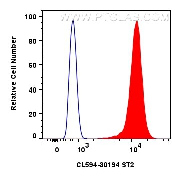 The IL-1RL1/ST2 antibody from Proteintech is a rabbit polyclonal antibody to a recombinant protein of human IL-1RL1/ST2. This antibody recognizes human antigen. The IL-1RL1/ST2 antibody has been validated for the following applications: FC (Intra) analysis. This antibody is coraliteR594.