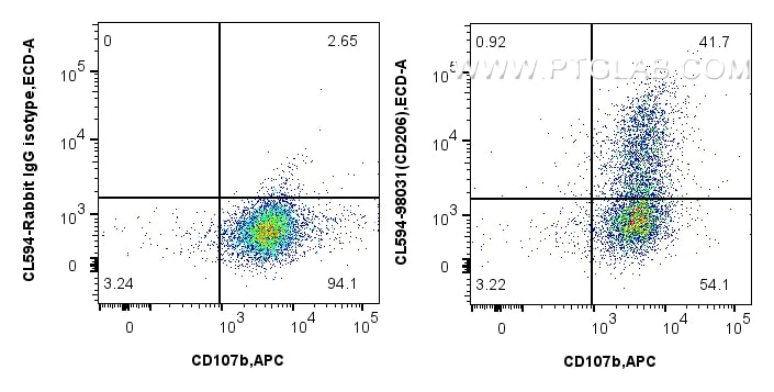 The CD206 antibody from Proteintech is a rabbit recombinant antibody to a recombinant protein of mouse CD206. This antibody recognizes mouse antigen. The CD206 antibody has been validated for the following applications: FC analysis. This antibody is coraliteR594.