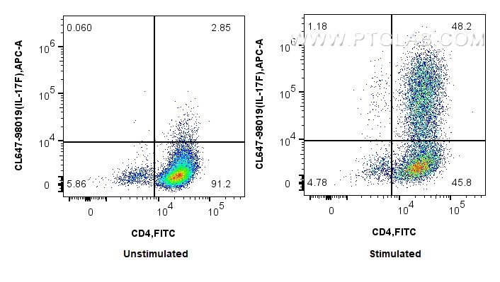 The IL-17F antibody from Proteintech is a rabbit recombinant antibody to a fusion protein of mouse IL-17F. This antibody recognizes mouse antigen. The IL-17F antibody has been validated for the following applications: FC (Intra) analysis. This antibody is coraliteR plus 647.