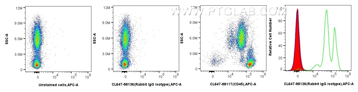 The IgG Isotype Control antibody from Proteintech is a rabbit recombinant antibody to a peptide. This antibody recognizes n/a antigen. The IgG Isotype Control antibody has been validated for the following applications: FC analysis. This antibody is coraliteR plus 647.
