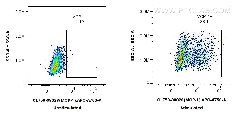 The MCP-1/CCL2 antibody from Proteintech is a rabbit recombinant antibody to a fusion protein of mouse MCP-1/CCL2. This antibody recognizes mouse antigen. The MCP-1/CCL2 antibody has been validated for the following applications: FC (Intra) analysis. This antibody is coraliteR plus 750.