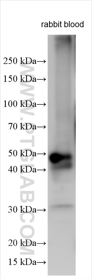 The Haptoglobin antibody from Proteintech is a rabbit polyclonal antibody to a recombinant protein of human Haptoglobin. This antibody recognizes human, rat, pig, rabbit antigen. The Haptoglobin antibody has been validated for the following applications: WB, IP, ELISA analysis.