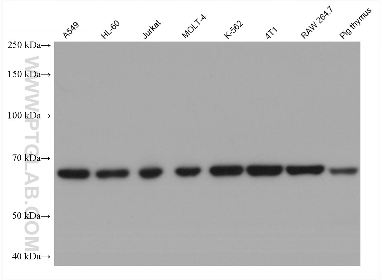 The MYB/c-Myb antibody from Proteintech is a mouse monoclonal antibody to a recombinant protein of human MYB/c-Myb. This antibody recognizes human, mouse, pig antigen. The MYB/c-Myb antibody has been validated for the following applications: WB, ELISA analysis.