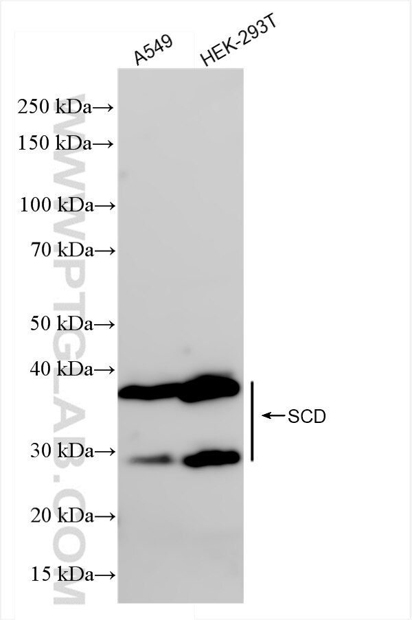 The SCD1 antibody from Proteintech is a rabbit recombinant antibody to a fusion protein of human SCD1. This antibody recognizes human antigen. The SCD1 antibody has been validated for the following applications: WB, IF/ICC, FC (Intra), ELISA analysis.