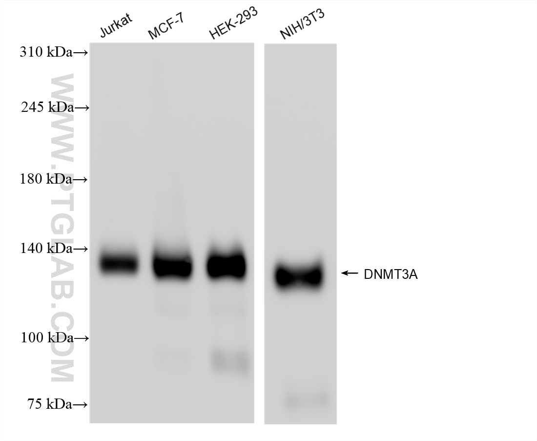 The DNMT3A antibody from Proteintech is a rabbit recombinant antibody to a recombinant protein of human DNMT3A. This antibody recognizes human, mouse, rat antigen. The DNMT3A antibody has been validated for the following applications: WB, ELISA analysis.