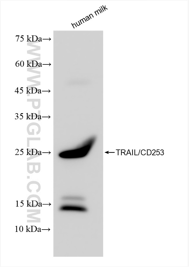 The TRAIL antibody from Proteintech is a rabbit recombinant antibody to a recombinant protein of human TRAIL. This antibody recognizes human antigen. The TRAIL antibody has been validated for the following applications: WB, ELISA analysis.