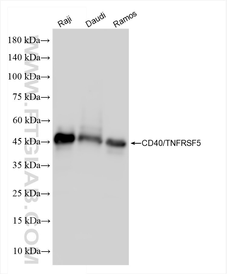 The CD40 antibody from Proteintech is a rabbit recombinant antibody to a fusionprotein of human CD40. This antibody recognizes human antigen. The CD40 antibody has been validated for the following applications: WB, IF/ICC, ELISA analysis.