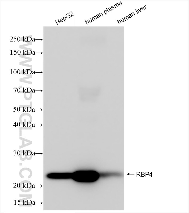 The RBP4 antibody from Proteintech is a rabbit recombinant antibody to a recombinant protein of human RBP4. This antibody recognizes human antigen. The RBP4 antibody has been validated for the following applications: WB, ELISA analysis.