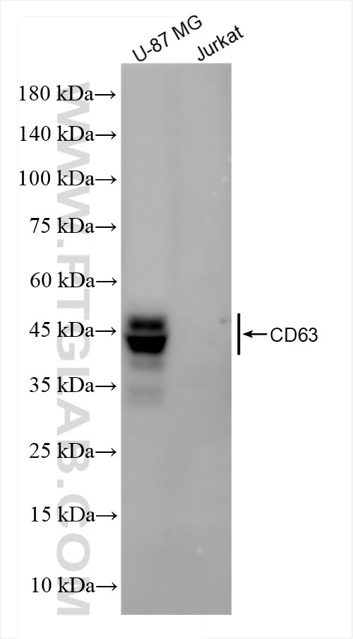 The CD63 antibody from Proteintech is a rabbit recombinant antibody to a fusionprotein of human CD63. This antibody recognizes human antigen. The CD63 antibody has been validated for the following applications: WB, IHC, IF/ICC, ELISA analysis.