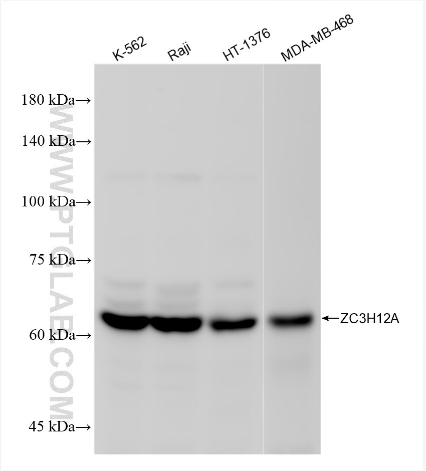 The ZC3H12A antibody from Proteintech is a rabbit recombinant antibody to a recombinant protein of human ZC3H12A. This antibody recognizes human antigen. The ZC3H12A antibody has been validated for the following applications: WB, IF/ICC, FC (Intra), ELISA analysis.