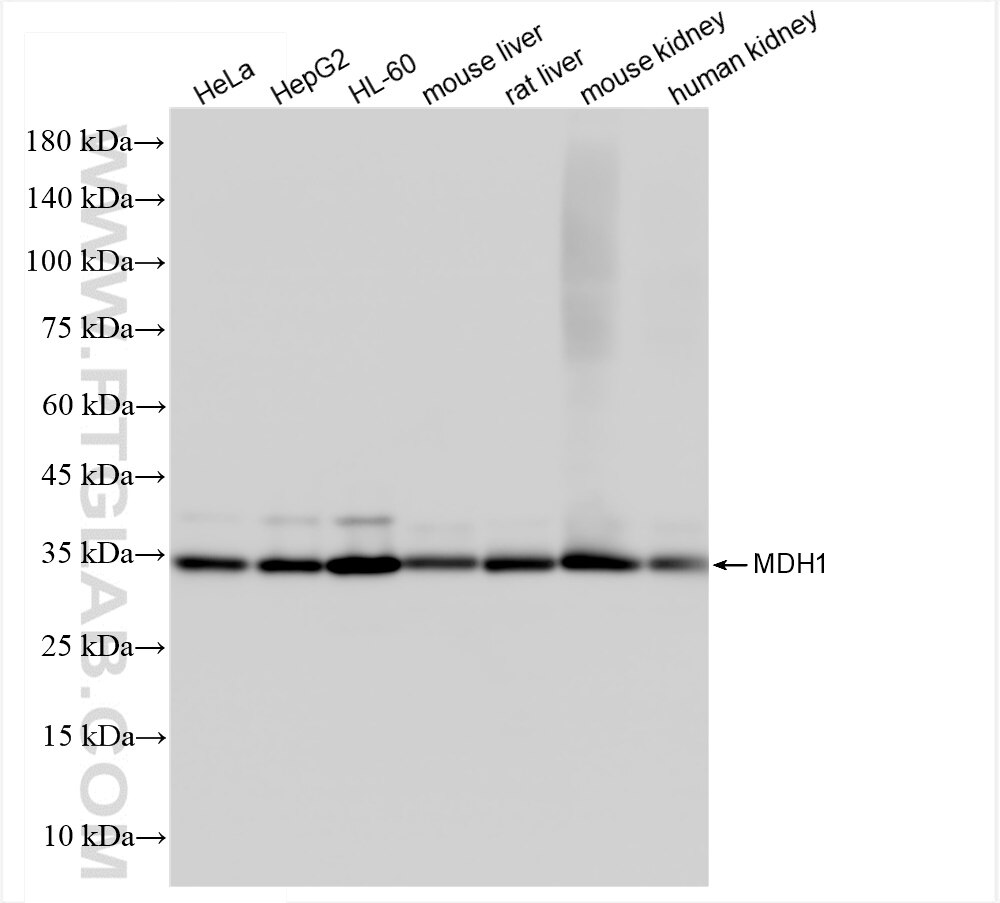 The MDH1 antibody from Proteintech is a rabbit recombinant antibody to a recombinant protein of human MDH1. This antibody recognizes human, mouse, rat antigen. The MDH1 antibody has been validated for the following applications: WB, IHC, ELISA analysis.
