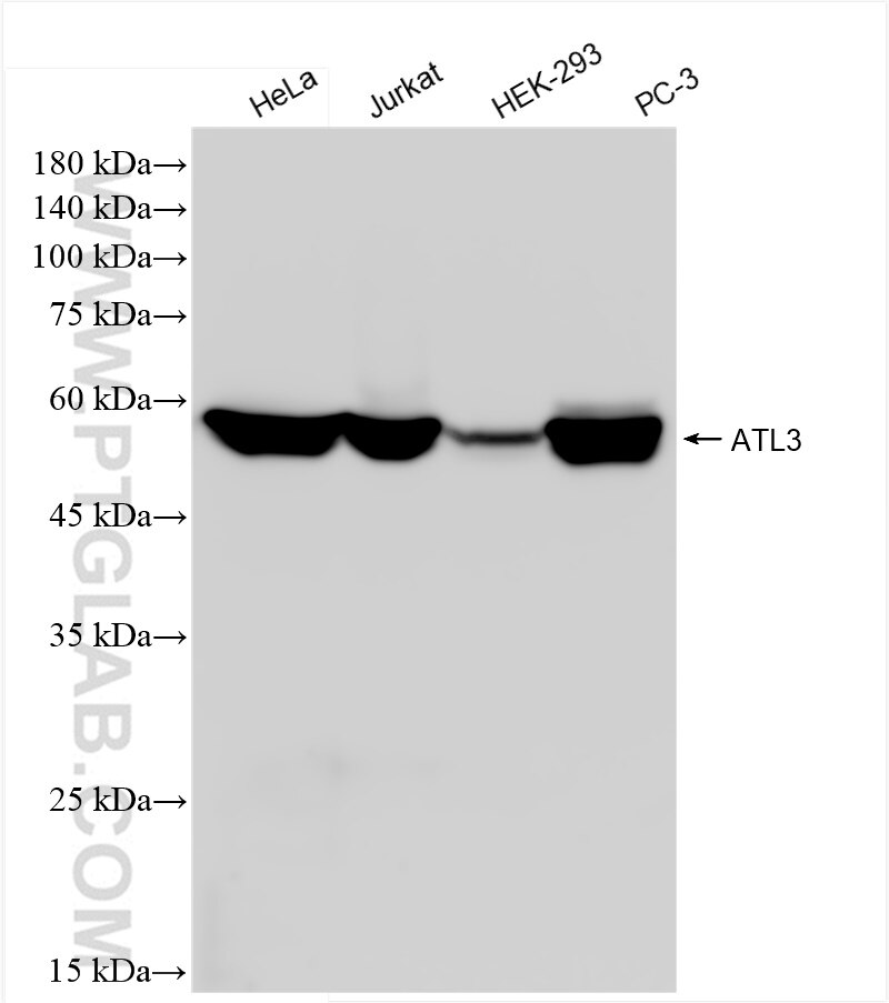 The ATL3 antibody from Proteintech is a rabbit recombinant antibody to a recombinant protein of human ATL3. This antibody recognizes human antigen. The ATL3 antibody has been validated for the following applications: WB, IF/ICC, ELISA analysis.