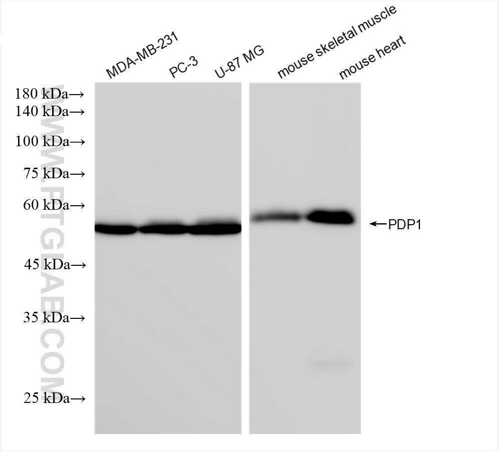 The PDP1 antibody from Proteintech is a rabbit recombinant antibody to a recombinant protein of human PDP1. This antibody recognizes human, mouse antigen. The PDP1 antibody has been validated for the following applications: WB, ELISA analysis.