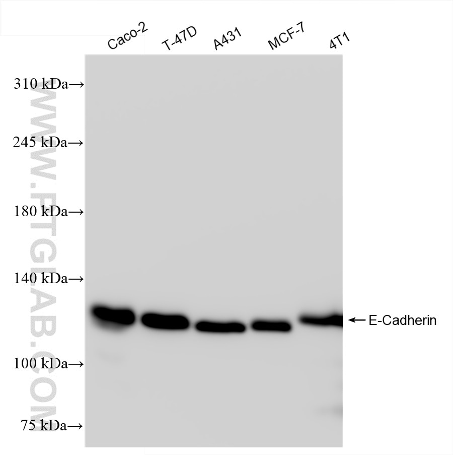 The E-Cadherin antibody from Proteintech is a rabbit recombinant antibody to a recombinant protein of rat E-Cadherin. This antibody recognizes human, mouse, rat antigen. The E-Cadherin antibody has been validated for the following applications: WB, IHC, ELISA analysis.