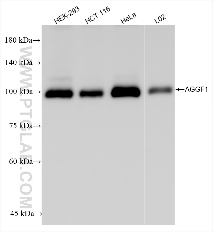 The AGGF1 antibody from Proteintech is a rabbit recombinant antibody to a recombinant protein of human AGGF1. This antibody recognizes human antigen. The AGGF1 antibody has been validated for the following applications: WB, ELISA analysis.
