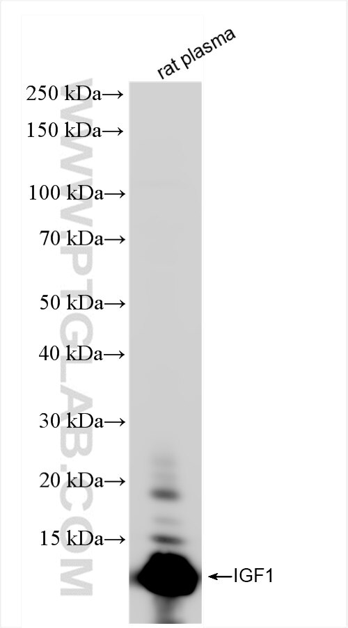 The IGF1 antibody from Proteintech is a rabbit recombinant antibody to a recombinant protein of rat IGF1. This antibody recognizes rat antigen. The IGF1 antibody has been validated for the following applications: WB, FC (Intra), ELISA analysis.
