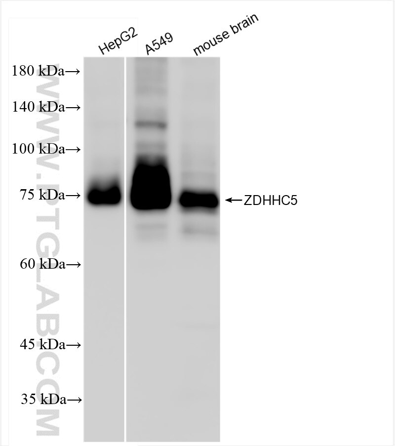 The ZDHHC5 antibody from Proteintech is a rabbit recombinant antibody to a recombinant protein of human ZDHHC5. This antibody recognizes human, mouse antigen. The ZDHHC5 antibody has been validated for the following applications: WB, IP, ELISA analysis.