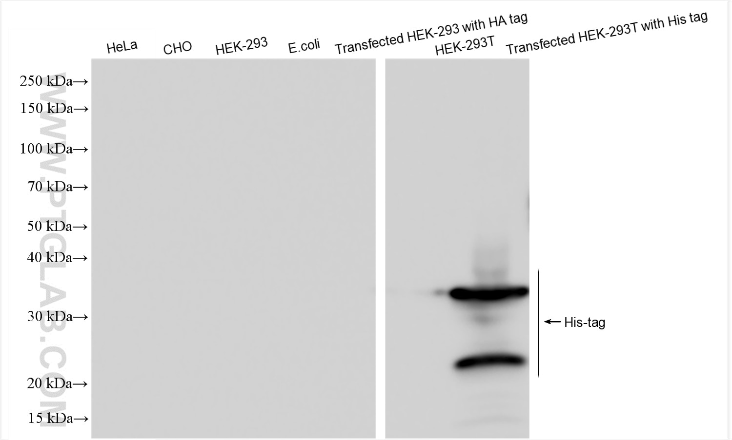 The 6*his,His tag antibody from Proteintech is a rabbit recombinant antibody to a peptide of 6*his,His tag. This antibody recognizes recombinant protein antigen. The 6*his,His tag antibody has been validated for the following applications: WB, IF/ICC, FC (Intra), ELISA analysis.