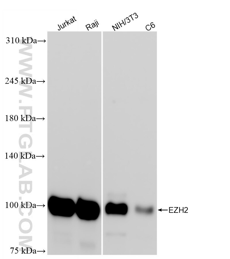 The EZH2 antibody from Proteintech is a rabbit recombinant antibody to a recombinant protein of human EZH2. This antibody recognizes human, mouse, rat antigen. The EZH2 antibody has been validated for the following applications: WB, IF/ICC, ELISA analysis.