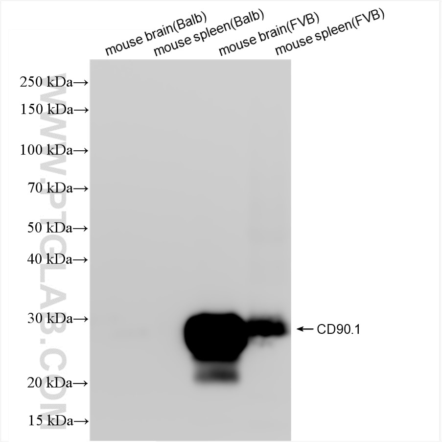 The CD90.1 antibody from Proteintech is a rabbit recombinant antibody to a recombinant protein of mouse CD90.1. This antibody recognizes mouse antigen. The CD90.1 antibody has been validated for the following applications: WB, IHC, IF-P, ELISA analysis.