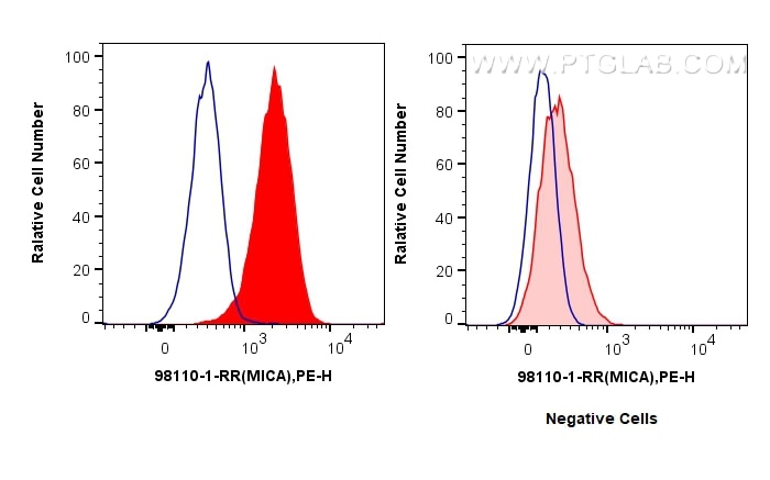 The MICA/MICB antibody from Proteintech is a rabbit recombinant antibody to a fusion protein of human MICA/MICB. This antibody recognizes human antigen. The MICA/MICB antibody has been validated for the following applications: FC analysis.