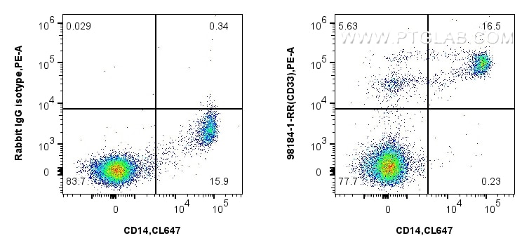 The CD33 antibody from Proteintech is a rabbit recombinant antibody to a fusionprotein of human CD33. This antibody recognizes human antigen. The CD33 antibody has been validated for the following applications: FC analysis.