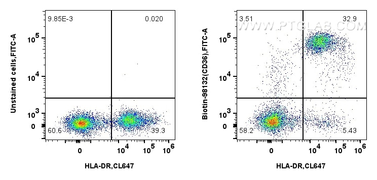 The CD36 antibody from Proteintech is a rabbit recombinant antibody to a fusion protein of human CD36. This antibody recognizes human antigen. The CD36 antibody has been validated for the following applications: FC analysis. This antibody is biotin.