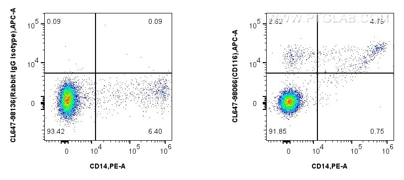 The CSF2RA/CD116 antibody from Proteintech is a rabbit recombinant antibody to a recombinant protein of human CSF2RA/CD116. This antibody recognizes human antigen. The CSF2RA/CD116 antibody has been validated for the following applications: FC analysis. This antibody is coraliteR plus 647.