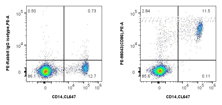 The CD86 antibody from Proteintech is a rabbit recombinant antibody to a fusion protein of human CD86. This antibody recognizes human antigen. The CD86 antibody has been validated for the following applications: FC analysis. This antibody is pe.