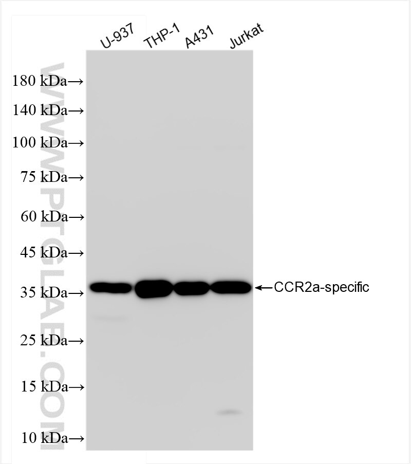 The CCR2a-specific antibody from Proteintech is a rabbit recombinant antibody to a peptide of human CCR2a-specific. This antibody recognizes human antigen. The CCR2a-specific antibody has been validated for the following applications: WB, ELISA analysis.