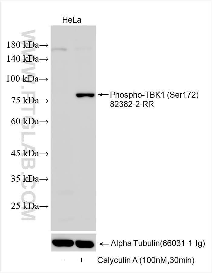 The Phospho-TBK1 (Ser172) antibody from Proteintech is a rabbit recombinant antibody to a peptide of human Phospho-TBK1 (Ser172). This antibody recognizes human antigen. The Phospho-TBK1 (Ser172) antibody has been validated for the following applications: WB, FC (Intra), ELISA analysis.