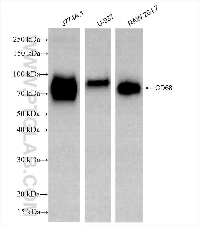 The CD68 antibody from Proteintech is a rabbit recombinant antibody to a recombinant protein of human CD68. This antibody recognizes human, mouse antigen. The CD68 antibody has been validated for the following applications: WB, IHC, ELISA analysis.