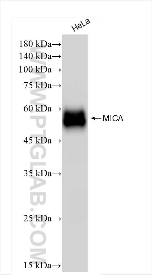 The MICA antibody from Proteintech is a rabbit recombinant antibody to a recombinant protein of human MICA. This antibody recognizes human antigen. The MICA antibody has been validated for the following applications: WB, ELISA analysis.