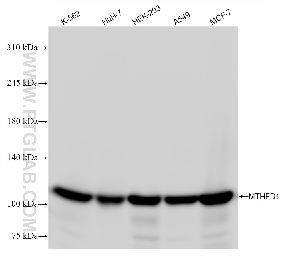 The MTHFD1 antibody from Proteintech is a rabbit recombinant antibody to a recombinant protein of human MTHFD1. This antibody recognizes human antigen. The MTHFD1 antibody has been validated for the following applications: WB, IF/ICC, ELISA analysis.